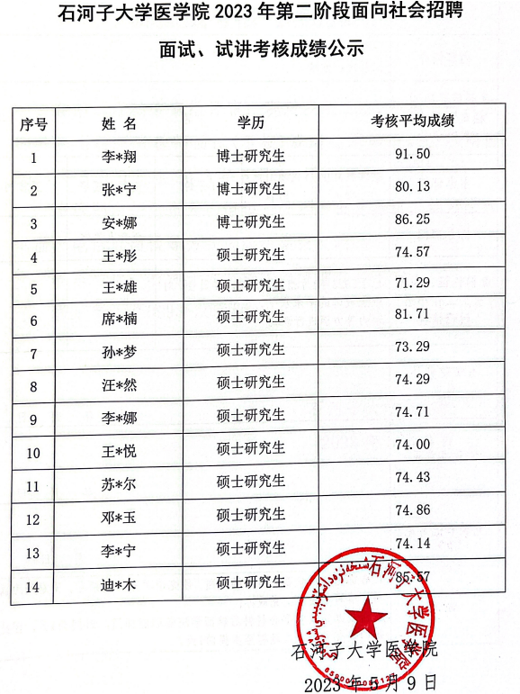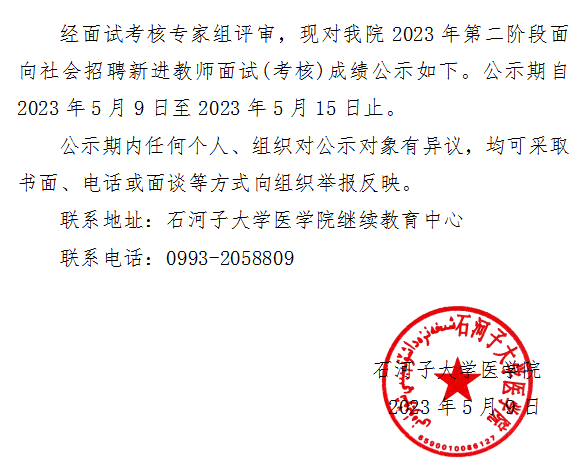 关于2023年第二阶段面向社会招聘新进教师面试考核成绩的公示