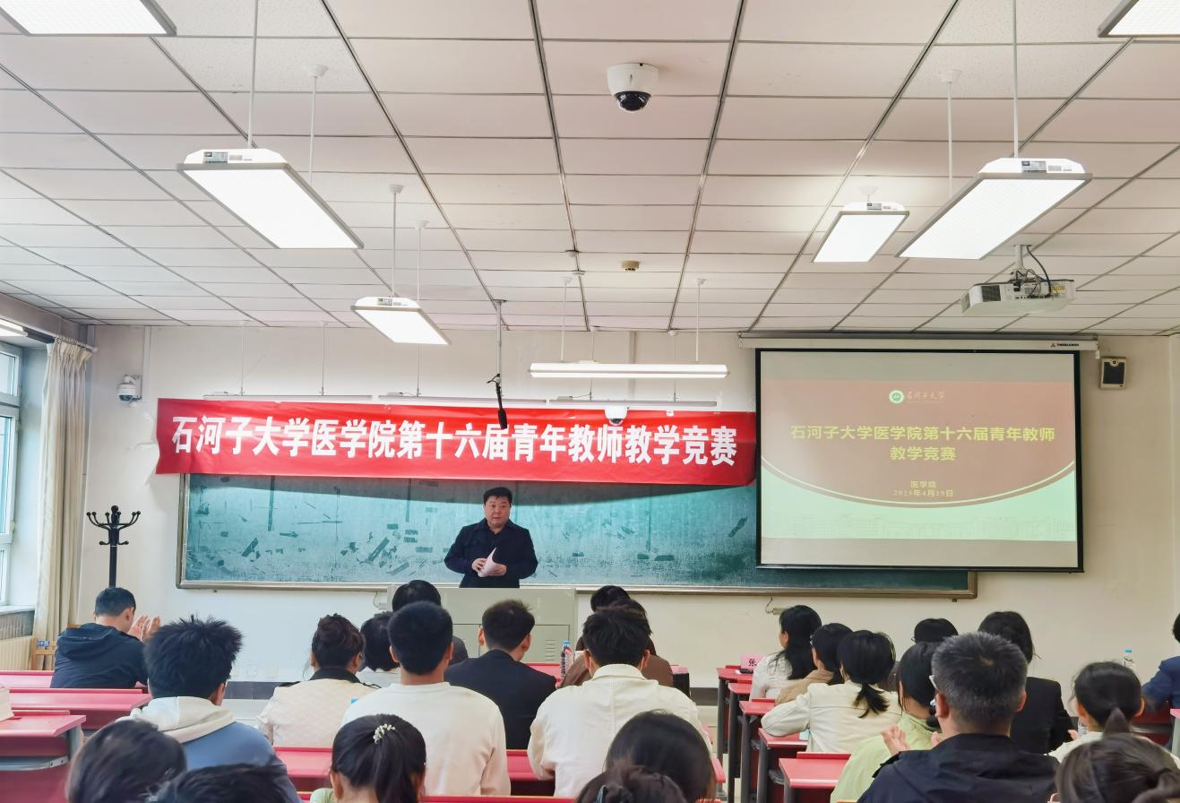 于4月19日在博学楼成功举办第十六届青年教师教学竞赛。来自院本部及第一、三附属医院的13名青年教师参加了此次竞赛。