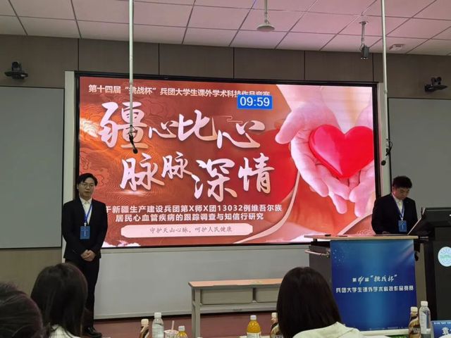 6月15—16日,由兵团团委、兵团科协、兵团教育局、兵团学联联合主办,塔里木大学承办的第十四届“挑战杯”兵团大学生课外学术科技作品竞赛终审决赛圆满收官。篮球现场比分 何佳、郭恒、罗丹共同指导的哲学社会科学类社会调查报告《“疆心”比心,脉脉深情——基于新疆生产建设兵团第X师X团居民心血管疾病的跟踪调查与知信行研究》项目,凭借扎实的调研成果与创新价值,从众多参赛作品中脱颖而出,荣获二等奖。