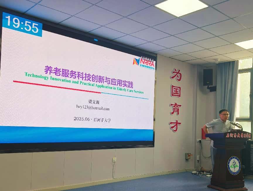国家康复辅具研究中心梁文渊高级工程师(报告题目:“养老服务科技创新与应用实践”)阐述了中国老龄化现状与科技养老的重要性,分享了团队在养老服务科技创新方面的实践,如老年人移位转运设备、行走能力评估工具、智能/爬楼梯轮椅研发等,并重点报告了针对脑卒中患者早期康复的成果。