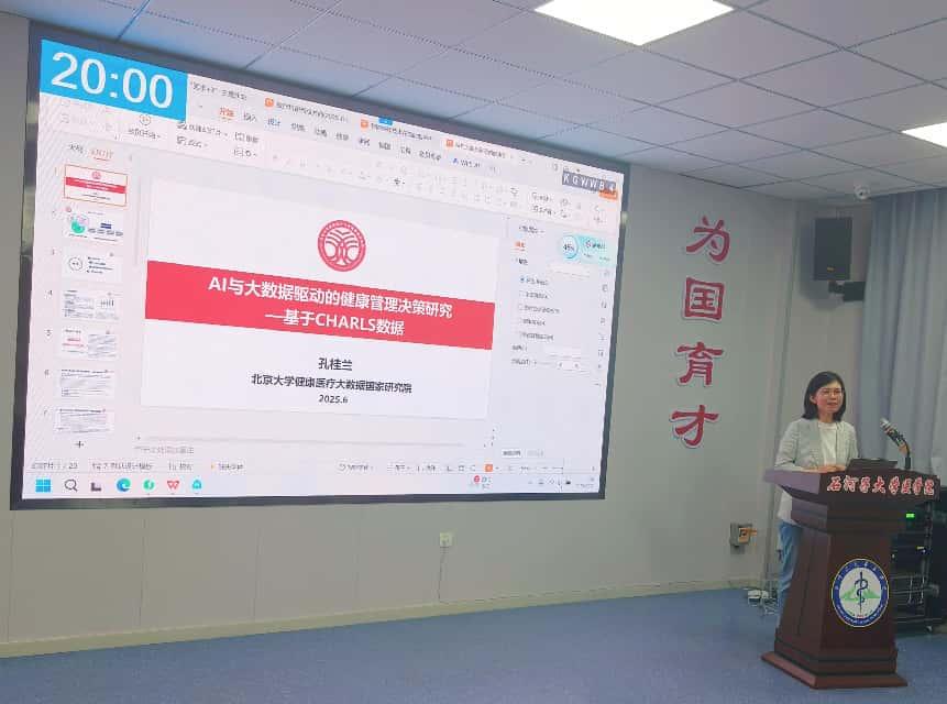 北京大学健康医疗大数据国家研究院孔桂兰教授(报告题目:“AI与大数据驱动的健康管理决策研究”)以CHARLS数据研究为例,深入阐述了运用大数据开展健康管理研究的思路与方法,并介绍了学习型健康医疗系统概念,同时剖析了AI与大数据赋能健康管理决策面临的挑战。