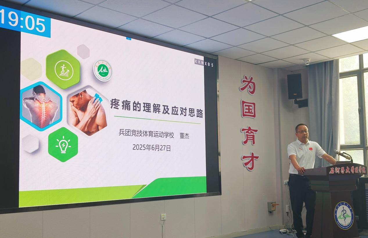 石河子大学竞技体校董杰教授(报告题目:“疼痛的理解及应对思路”)从运动医学视角出发,深入浅出地解析了疼痛机制及康复训练原理,提出通过体态评估分析运动模式以发现功能异常、解决疼痛问题的思路。