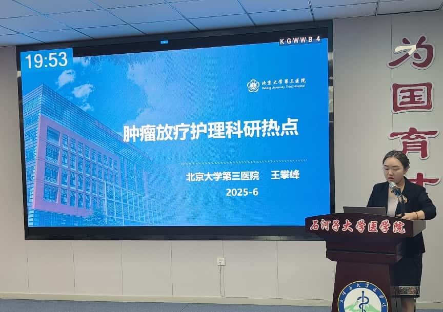 北京大学第三医院护理部王攀峰主任护师(报告题目:“肿瘤护理科研热点与前沿”)结合自身实践,详细介绍了放疗基础原理及肿瘤放疗护理的科研热点,包括副作用观察、心理干预、营养管理以及智能化护理技术应用等前沿方向。