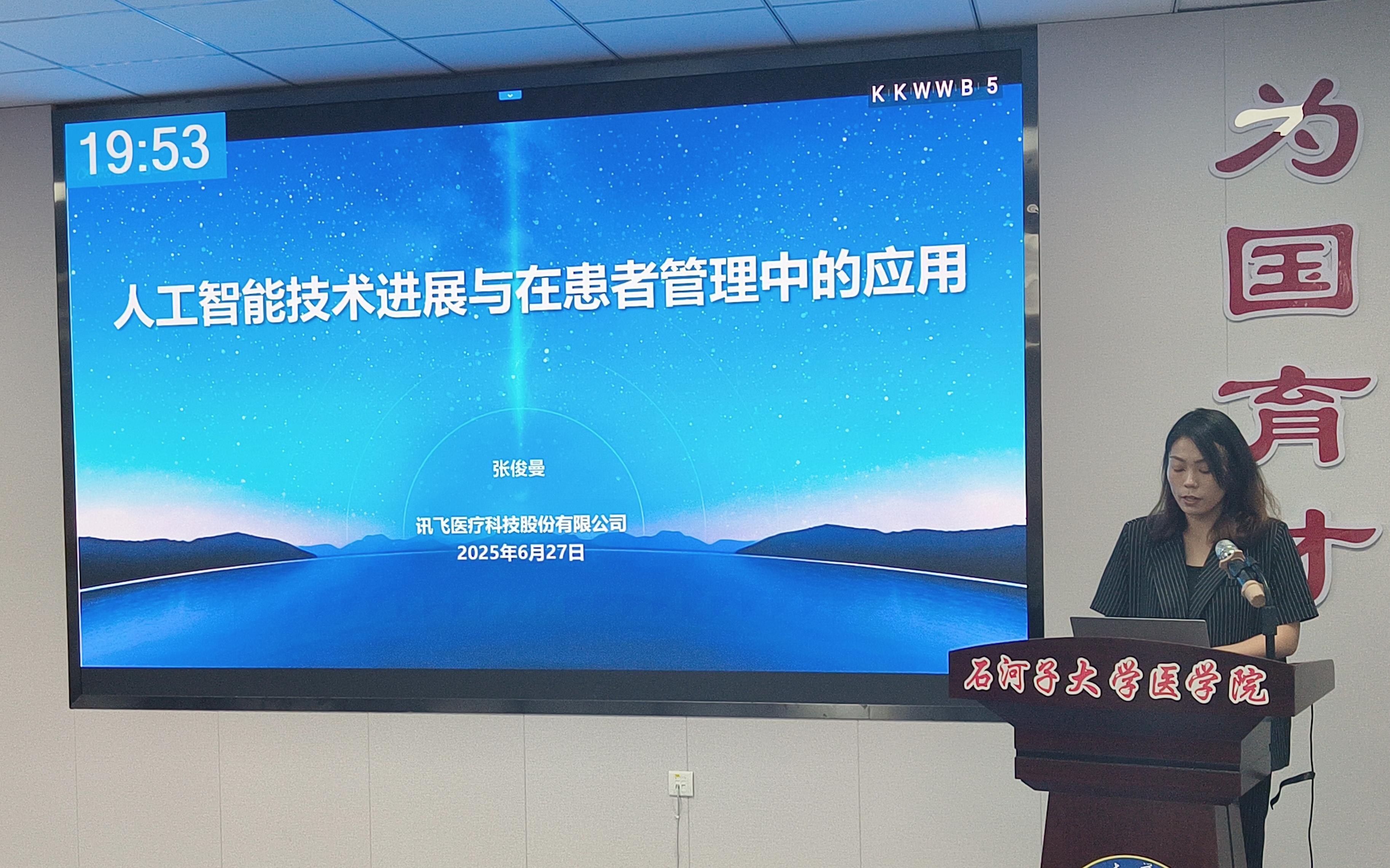 讯飞医疗科技股份有限公司新疆大区行业代表张俊曼(报告题目:“人工智能技术进展与在患者管理中的应用”)展示了人工智能技术的最新进展,重点介绍了讯飞医疗大模型在解决出院/诊后延续性医疗服务缺失、降低非计划再住院风险、辅助医生收集院外数据、提升患者黏性与复诊率等方面的应用实践。