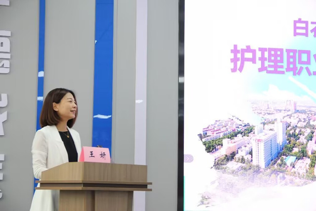 石河子大学第一附属医院护理部主任王妍,结合自身丰富的临床护理和管理经验,分享了护理工作中的挑战与成就,强调了专业素养、人文关怀在护理工作中的重要性,鼓励同学们扎实专业基础,培养敬业精神。