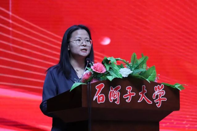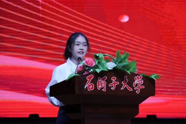 临床医学2025级新生李宣憬作为学生代表发言。她从石河子大学服务边疆的厚重历史谈起,分享了自己选择医学的初心:“从戈壁滩上的卫生学校到今天的国家区域医疗中心,一代代石医人的故事让我坚定信念。”她呼吁同学们脚踏实地夯实基础、拓宽生活维度、勇担时代使命,将个人理想融入健康中国建设。