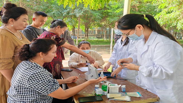 8月20日,篮球即时比分 赴第三师图木舒克市“心糖共管”科普服务践行团的16名师生,共同深入图木舒克市美丽社区与幸福社区,开展“三下乡”社会实践活动。本次行动紧密结合社区需求,聚焦三十五岁以上居民的高血压、糖尿病筛查,通过专业化的健康筛查工具和生动的科普宣教形式,累计完成高血压与糖尿病筛查七百余人次,有效提升了居民的健康意识和疾病防控能力。