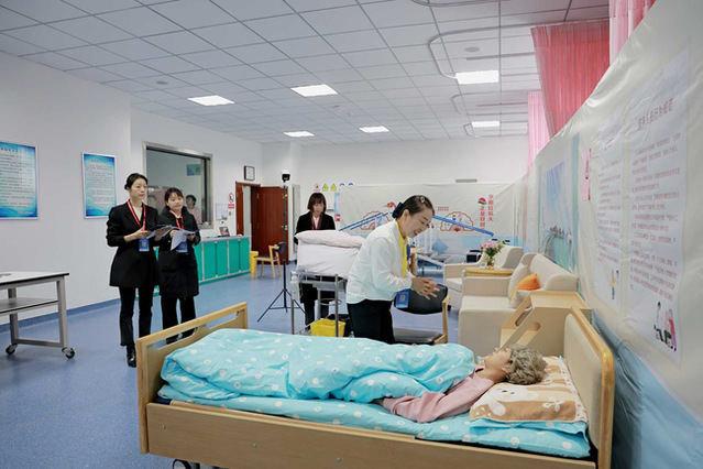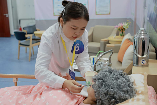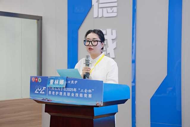 为深入贯彻落实党的二十大精神和中央关于加强高技能人才队伍建设的重要部署,加快推进专业化养老护理人才培养进程,由第八师石河子市民政局、人力资源和社会保障局、总工会联合主办,篮球即时比分 承办的2025年“工会杯”养老护理员职业技能竞赛,在篮球即时比分 顺利举行。大赛秉承“以赛促学、以赛促练”理念,全面强化养老护理员的专业技能与综合素养,为师市广大养老护理人员搭建起展示专业风采、交流服务经验的重要平台。