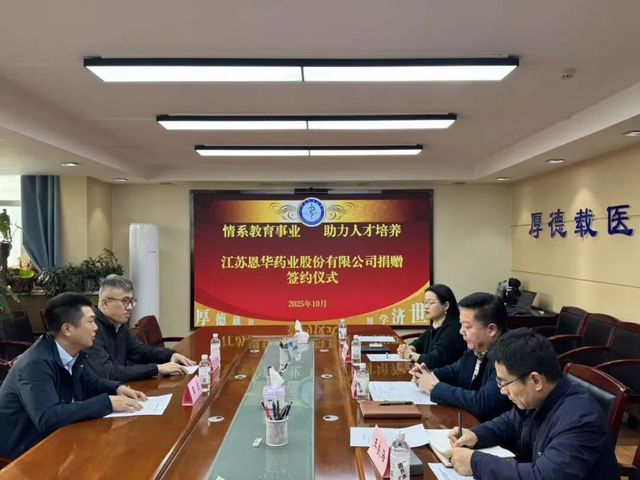 2025年10月21日下午,篮球即时比分 、临床篮球即时比分 与江苏恩华药业股份有限公司顺利举行“恩华奖学金”捐赠签约仪式。篮球即时比分 党委书记张青、副院长王良海、副院长万巧琴、学生工作办公室相关老师参加签约仪式,会议由副院长王良海主持。