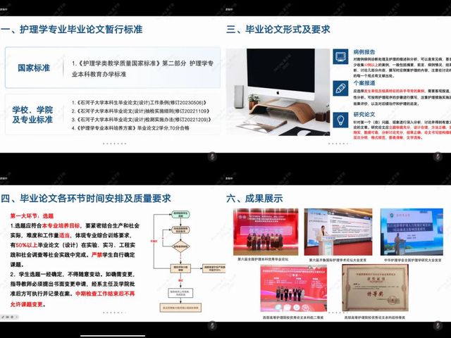 为规范2026届护理学本科毕业论文工作,明确开题报告撰写要求,2025年10月30日,护理学系通过腾讯会议举办“2026届护理学本科毕业论文安排及开题报告撰写培训”,全体论文指导老师及2026届护理学专业学生参与本次培训,此次培训由姬春老师主持。