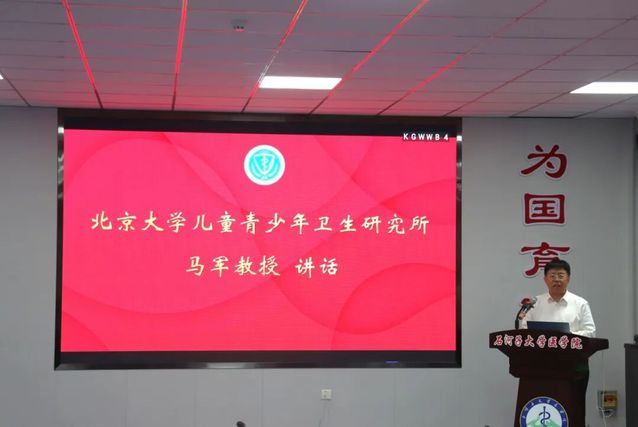 北京大学公共卫生学院副院长王海俊教授在发言中,回顾马军教授与石河子大学结缘的历程,介绍奖助学金设立背景,寄语石大学子珍惜学习机会,传承老一辈公卫人的治学精神。随后,马军教授深情讲述设立初衷:叶恭绍先生作为我国著名预防医学家、教育家和社会活动家,是中国儿童少年卫生学奠基人,毕生致力于儿童青少年卫生健康事业,其“预防为主”的理念与无私奉献精神值得永远传承。他希望通过该奖助学金,激励边疆学子深耕公卫领域,为国家健康事业贡献青春力量。