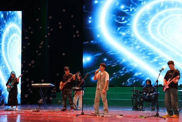 冲浪吉他社与大学生艺术团IMP乐团联袂献上乐队表演《恋爱预谋ing》,前者以轻快的节奏点燃青春的激情,后者则巧妙改编经典,带领观众进行一场穿越时空的音乐旅行。