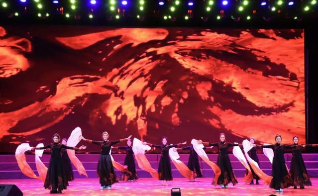 序章中,民族舞蹈串烧《逐光而舞·民族同心》热情开场。24位舞者以精湛舞姿串联起哈萨克族舞蹈的奔放与维吾尔族舞蹈的灵动,绚丽的服饰与明快乐曲交织,生动展现了天山脚下各族人民亲如一家的和谐画卷。