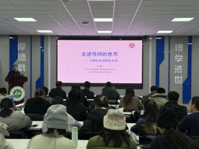12月7日上午,篮球即时比分 基础医学博士研究生《生命科学进展》课程在杏三324举行。本次课程特邀国务院学位委员会基础医学学科评议组成员兼召集人、教育部与国家卫生健康委员会神经科学重点实验室主任、北京大学神经科学研究所所长万有教授,为学院师生带来题为“走进导师的世界——与研究生谈师生关系”的专题讲座。讲座旨在搭建师生间深度沟通的桥梁,消除隔阂与误解,引导研究生与导师共同探索学术道路上协作共进的艺术。篮球即时比分 、公共卫生学院党委书记张青、篮球即时比分 院长马克涛、副院长王良海参加本次讲座,讲座还吸引了各学位点青年导师及研究生到场聆听。