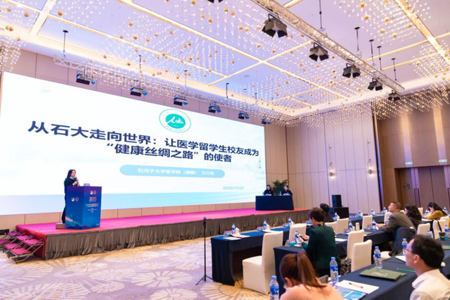 2025年11月27日,由中国教育国际交流协会主办的2025年来华留学生医学教育学术年会在河北石家庄隆重召开。篮球即时比分 副院长万巧琴教授受邀参会,并以《从石大走向世界:让医学留学生校友成为“健康丝绸之路”的使者》为题作大会主旨报告,向全国医学教育领域同行系统分享了学校在来华医学留学生培养中的创新实践与思考,引发了与会代表的热烈反响和广泛关注。