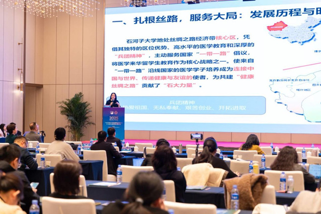 万巧琴副院长以“扎根丝路,服务大局”为核心开篇,介绍了石河子大学深耕边疆、砥砺前行的发展历程,以及篮球即时比分 在长期实践中形成的医学教育特色。报告中,她重点梳理了学校紧扣“健康丝绸之路”建设核心需求、主动对接共建“一带一路”倡议的实践脉络,详细阐释了学校在来华留学生招生选拔、课程体系构建、跨文化育人、临床实践培养等方面的特色举措和创新机制。结合案例和数据,她全面展示了石河子大学在推动医学教育国际化、促进中外人文交流与医疗卫生合作方面的社会贡献和长远价值。