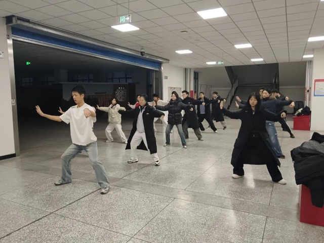 同学们整齐列队,热情参与。伴随着悠扬舒缓的音乐,凝神静气,抬手、转身、推掌……动作行云流水,弓步稳如山岳,推手柔中带刚,营造出积极向上的锻炼氛围。
