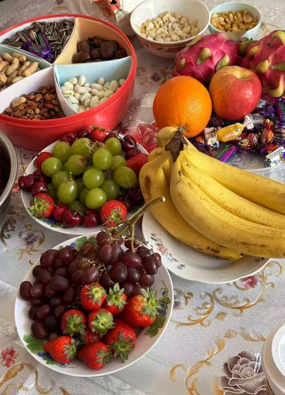 像新疆的年味,则是豪迈与香甜的碰撞。馕坑烤出的馕香飘四溢,手抓饭、大盘鸡摆满餐桌,葡萄、哈密瓜、巴旦木等干果堆成小山,一家人边吃边聊,再配上一段美丽的新疆舞,热情似火的年味,瞬间感染每一个人。