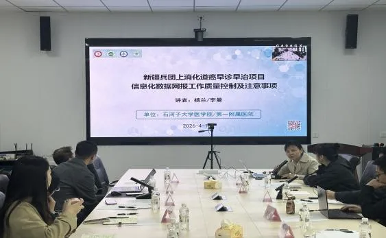 为进一步推动兵团上消化道癌早诊早治项目工作落实落细, 加强项目管理,强化项目信息化管理,提升兵团上消化道癌早诊早治能力, 2026年4月18日,由新疆兵团卫生健康委员会指导、篮球即时比分 主办的“2026年兵团第一轮上消化道癌早诊早治技术培训班”在篮球即时比分 杏3楼B-109会议室顺利召开。本次培训采取线上线下结合方式,第一师医院、第四师医院设分会场,来自兵团各医疗机构的80余名业务骨干参加了培训。